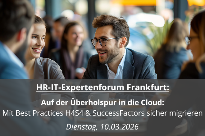 Unsere HR-IT-Experten halten regelmäßig informative Live-Webinare und Crashkurse zu aktuellen Trendthemen im Personalmanagement. Zudem bietet unsere Mediathek eine große Auswahl an On-Demand-Webinaren zu SuccessFactors, SAP HR, Learning-Management-Systeme und viele weitere Themen. Möchten Sie uns live kennenlernen? Dann besuchen Sie unsere Vor-Ort-Events mit spannenden Vorträgen.